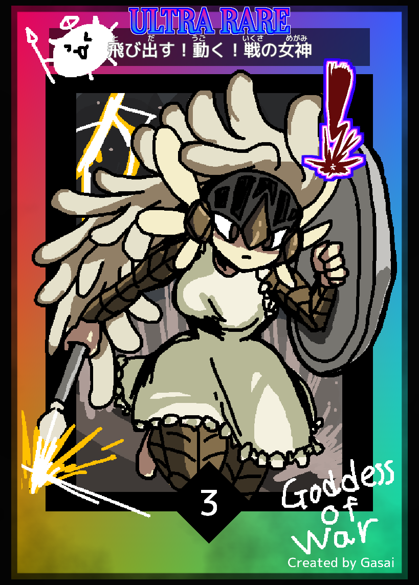 ULT:打ち負かしたカードを3枚まで下に置くことができる。下に置いたとき、そのカードの場に出た時の能力を発動する。